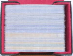 カードの厚みが0.04mm変わっています。これは極端な例ですが、0.01mm程度の違いはどのカードにもあります。厚みの違うカードが含まれている枚数が増えると、収納枚数が必ず一致するとは限らない事をご了承ください。